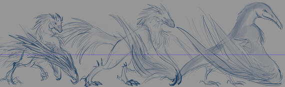 Initially, I will draw the basic interpretation of the concept at hand, not yet using references or complex posing. The initial sketches are done to feel out the design, understand the basic construction of what I will be drawing going forward. They also serve to inform me about what research I will need to do going forward to find success in the design I'm creating.Creative writing